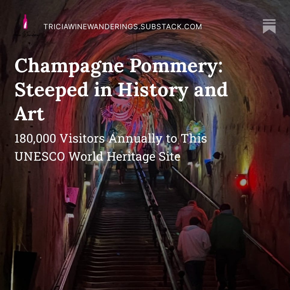 Wine Enthusiast, 91 Points.This wine offers a fresh, subtle, elegant, creamy mousse with citrus overtones. Ch. Pommery is a “must-see” Champagne House in Reims, France. See “Champagne Pommery: Steeped in History and Art,” Wine Wanderings, September, 2023.