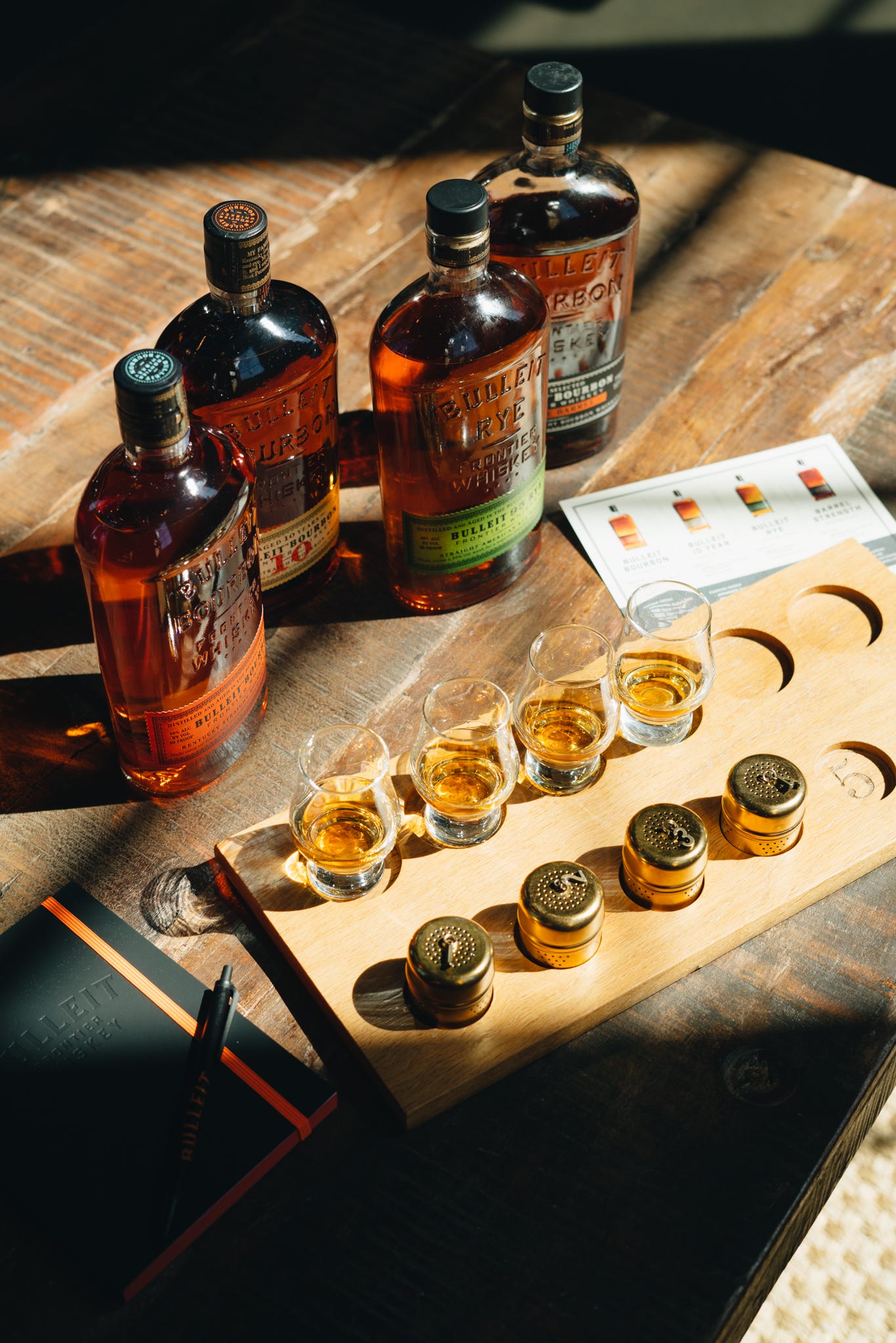The Anatomy of a Single Barrel - The perfect way to elevate your bourbon tasting experience. Enjoy three different single barrel samples in your private tasting room, exploring the notes of each specific yeast strain, and how they contribute to the overall flavor profile. A fourth sample is included, the flagship Bulleit Bourbon, to symbolize the finished product. Includes a locally made chocolate caramel.