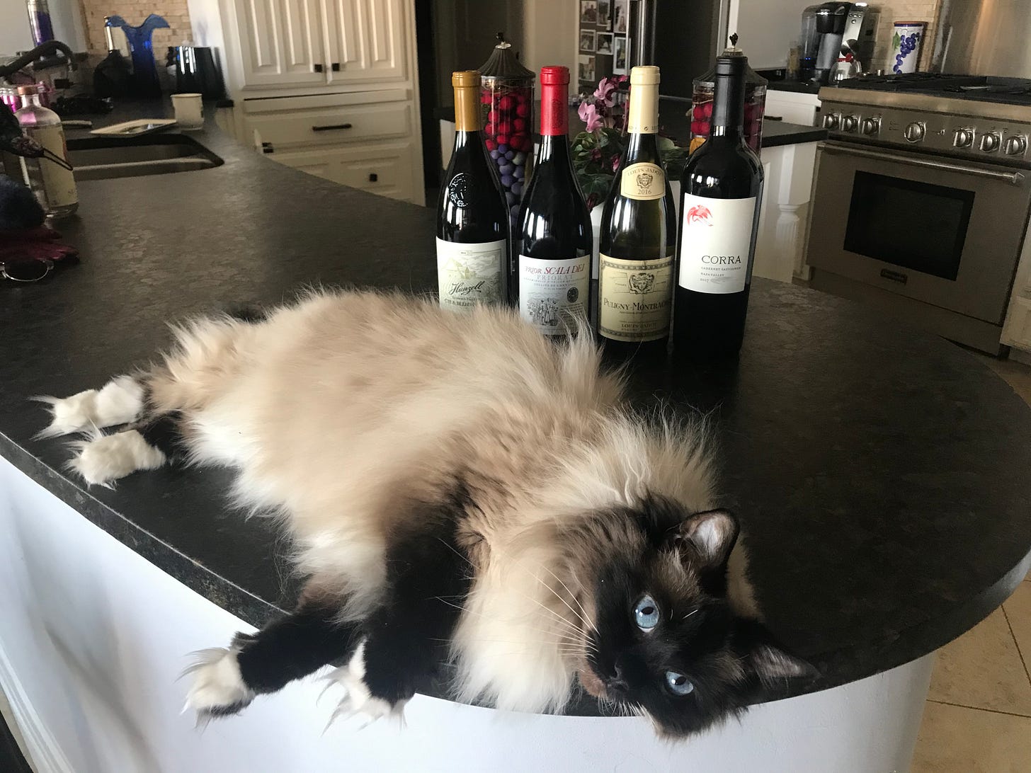 Lucy, My Ragdoll, with Several of Her Cellar Favorites