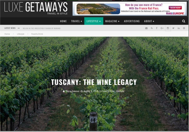 August 2018 LuxeGetaways article on the Antinori Family legacy.